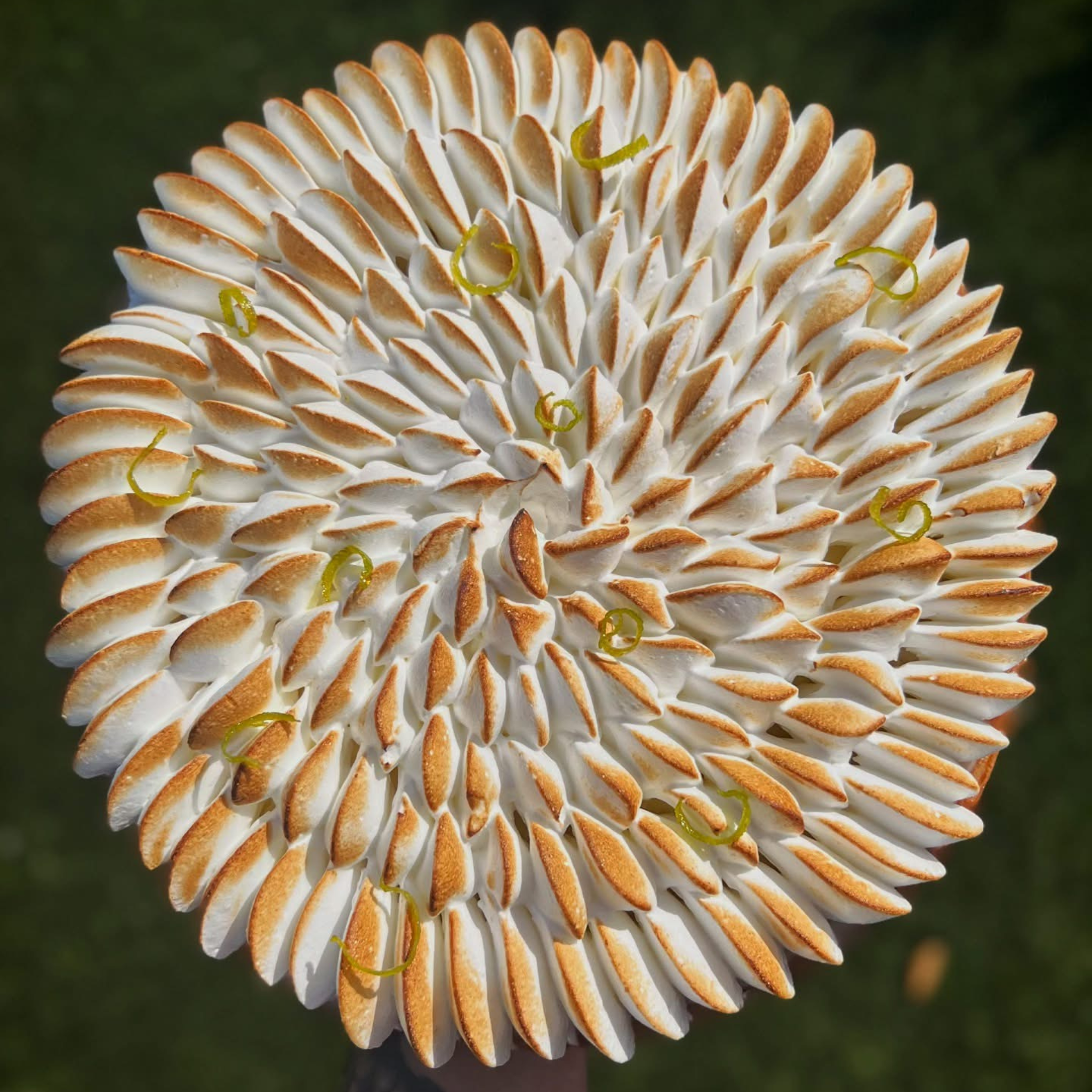Pâte sucrée, crémeux citron jaune, zestes de citron vert, confits et meringue italienne